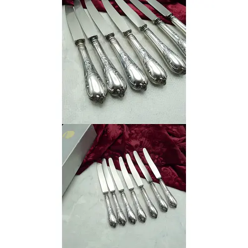 seltenes Obstbesteck von Hanseat Modell Chippendale 6 Obstmesser und 6 Obstgabeln Messerlänge ca. 16,3 cm 90g Silberauflage sehr guter Zustand, ohne Abrieb