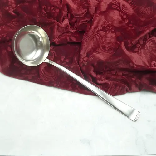 Das Besteck OKA Modell 131 Art Deco Pyramide ist ein beeindruckendes Beispiel für den Art-Deco-Stil, kombiniert mit einem besonderen Designelement am Griffende – einer markanten, pyramidenförmigen Stufung. Das Modell 131 zeichnet sich durch seine geometrischen, klaren Formen aus, die typisch für die Art-Deco-Bewegung sind, während das getreppte Griffende an den Aufstieg einer Pyramide erinnert und dem Besteck eine besondere architektonische Anmutung verleiht. Die Form wirkt schlicht, doch gleichzeitig äußerst elegant und erhaben, typisch für den Art-Deco-Stil, der funktionale Gestaltung mit dekorativen Elementen kombiniert.