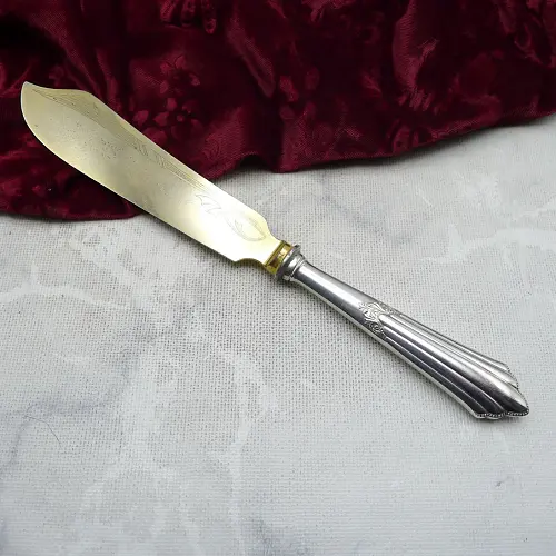 1 Fischmesser von WMF aus der Serie 900 Fächer Länge ca. 21,2cm , noch mit Schwalbe im Dekor 90g Silberauflage guter Zustand